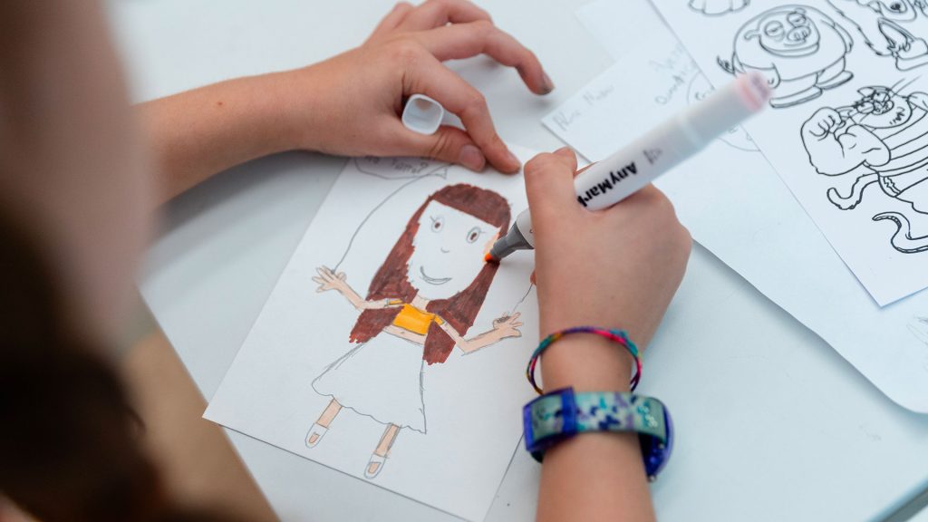 Dopo una visita alla mostra di Andrea Pazienza, adulti e bambini si lasciano ispirare dai segni grafici dell’artista per realizzare una firma di famiglia che possa essere rappresentativa della stessa e possa contenere tutti i migliori auspici. Le lettere e nomi creeranno il proprio disegno, una nuvola di parole ricca di significati.